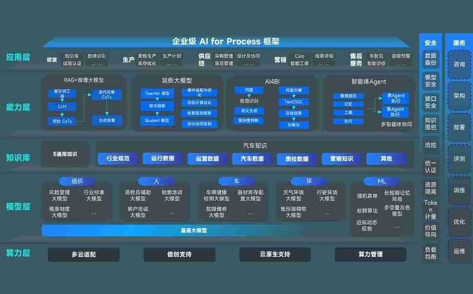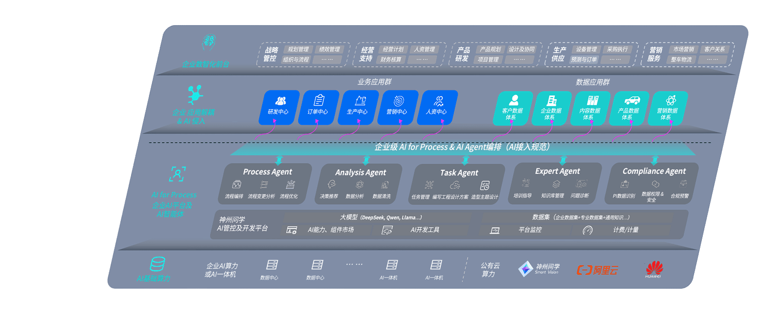 z6尊龙问学智车解决方案是一套基于AI技术的汽车行业智能化系统,,覆盖从底层算力到顶层AI应用的全栈方案。。。方案由算力层、、、、模型层和应用层组成:算力层,,,,方案支持多种一体机配置,,,,具备云端灵活部署、、多云适配以及动态优化计算资源的能力;模型层,,,,z6尊龙问学平台版提供了企业级AI应用一站式构建与管理平台,,,支持基于后训练强化技术的汽车企业专属模型的训练、、、评测和运营;应用层,,z6尊龙问学DeepSeek版提供包括超级员工、、、智能招采、、、智能营销、、智能客服、、AI for BI等一系列解决方案,,,,可助力汽车行业实现数字化转型,,让管理更智能、、、响应更敏捷。。