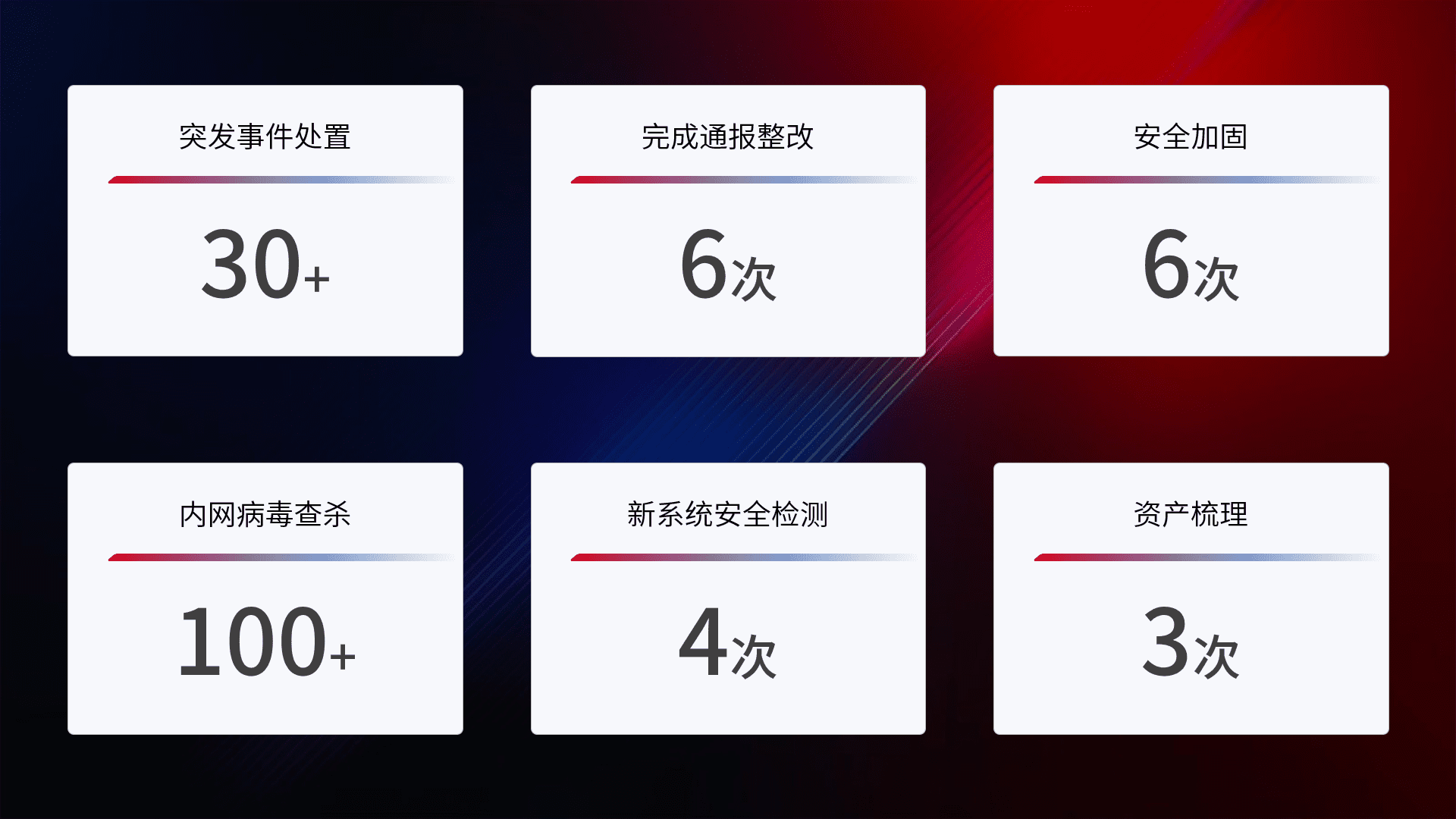 安全水平提升与事件响应:派驻经验丰富的安全工程师,,,提升医院网络安全防护的整体水平;建立突发网络安全事件的处置流程,,,提高响应速度和处置能力。。